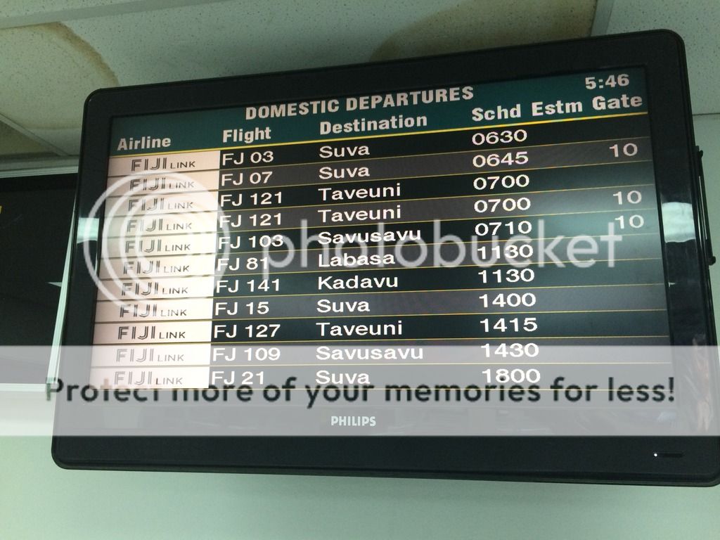C'e' un volo diretto con Air Vanuatu (circa 4 ore), ma non siamo autorizzati a prenotarlo. Da quello che ho capito, la nostra assicurazione non copre questa compagnia. Virgin Australia vola su Brisbane, ma ogni tanto i voli vengono cancellati a causa della condizione della pista di Port Vila. Qantas non vola per lo stesso motivo. L'unica opzione "sicura" rimane andare via Fiji (due ore extra nella direzione opposta). Ne aprofitto per organizzare un meeting nella capitale Suva.
