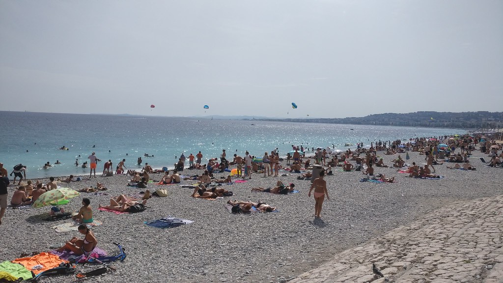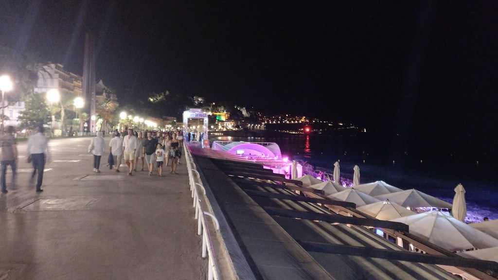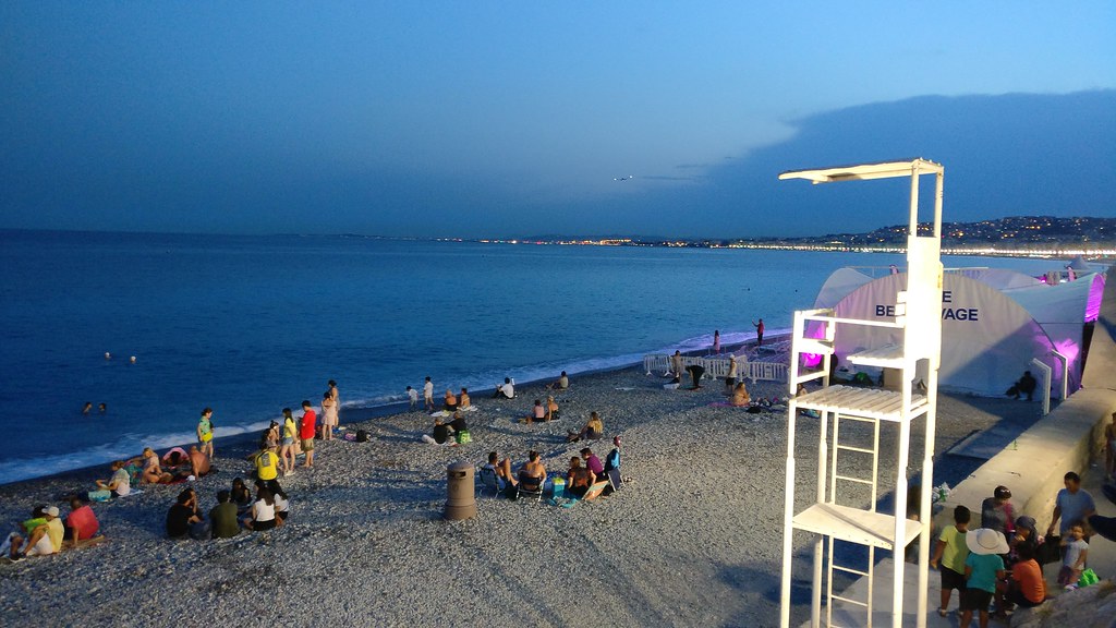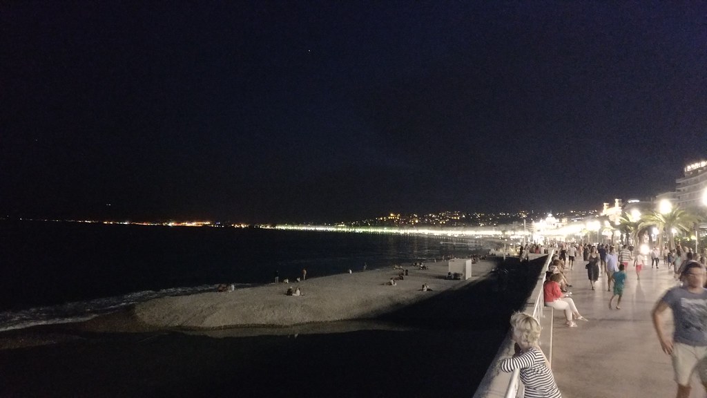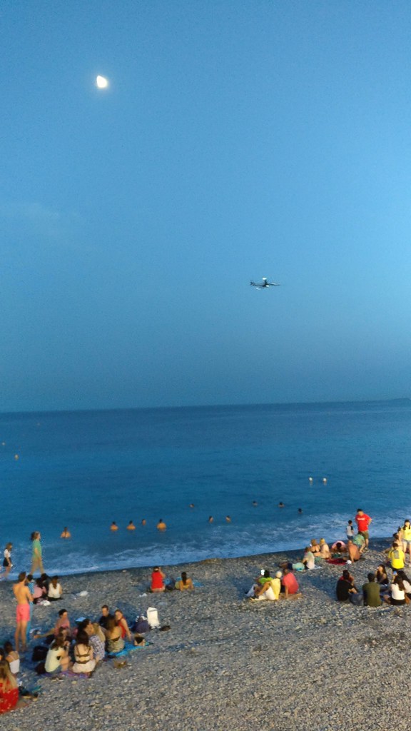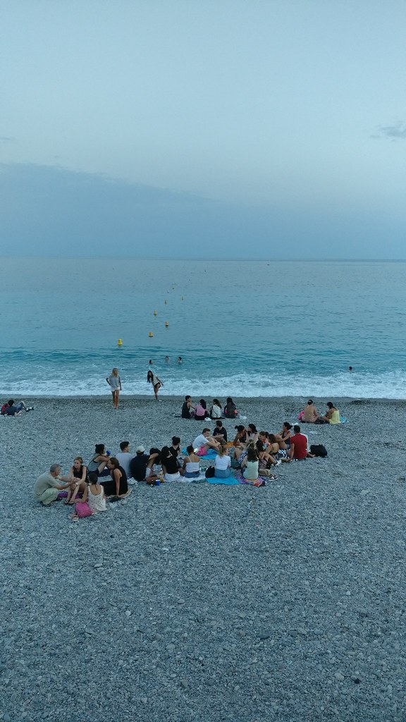 Mi dirigo in ostello, pensando di dormire per un'oretta e poi uscire in giro. Ovviamente non si dorme. Una volta in ostello conosco due dei miei compagni di camerata. Un ragazzo brasiliano nel pieno del suo EuroTrip ed un ragazzo di origini vietnamite che vive in Germania. C'è un buon feeling tra noi. Andiamo insieme al bar dell'ostello per bere qualcosa di fresco, visto che sono le 19 ma è ancora molto caldo. Passiamo un'oretta a chiacchierare e nel frattempo si unisce a noi (eravamo i piú chiassosi ovviamente) un ragazzo svedese. Visto che ho solo una notte qui a Nizza propongo di spostarci sul lungomare, proposta accettata all'unanimità.