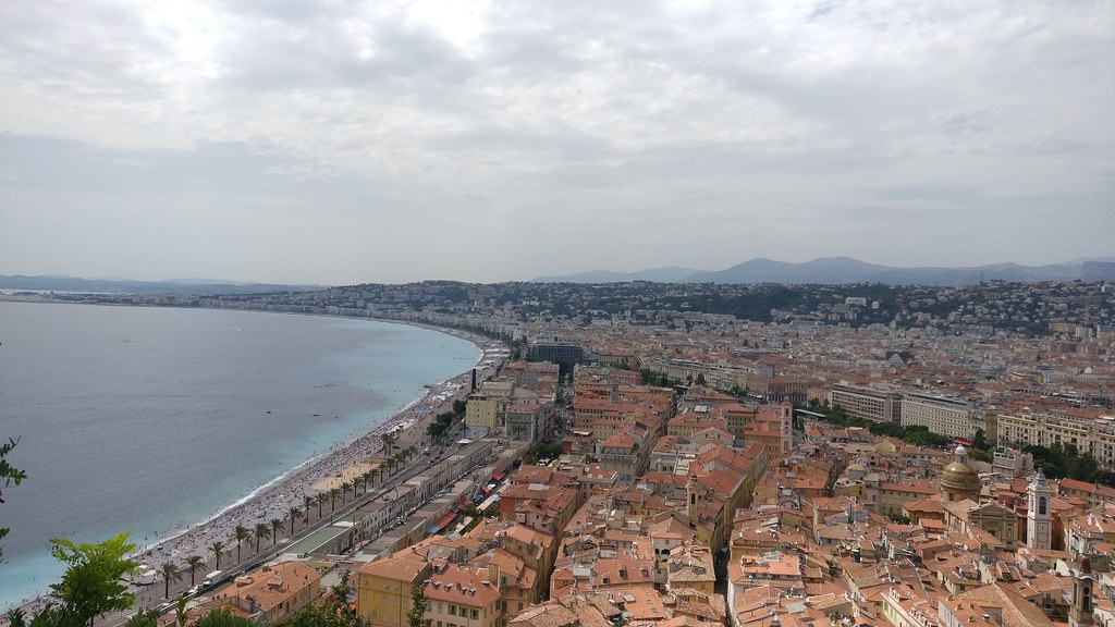 Questo è lo spettacolo a cui ci si ritrova di fronte un volta in cima. Purtroppo le foto non rendono molto. Alla fine della spiaggia si intravede l'Aeroporto di Nizza.
