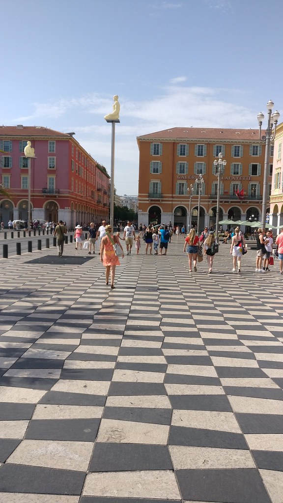 Nelle vicinanze del lungomare c'è Piazza Massena, una delle principali piazze della città e, forse la piú elegante. Circondata da portici dove ci sono molti bar e negozi e ristoranti. Le statue che vedete in foto sono un'opera d'arte dell'artista Jaume Plensa e rappresentano i sette continenti.
