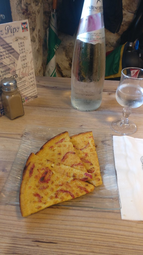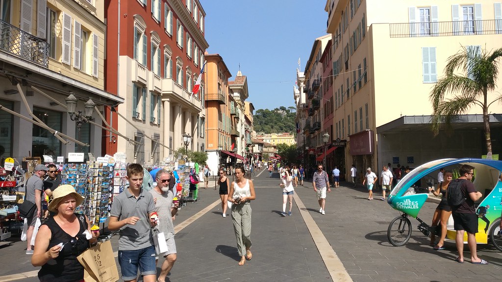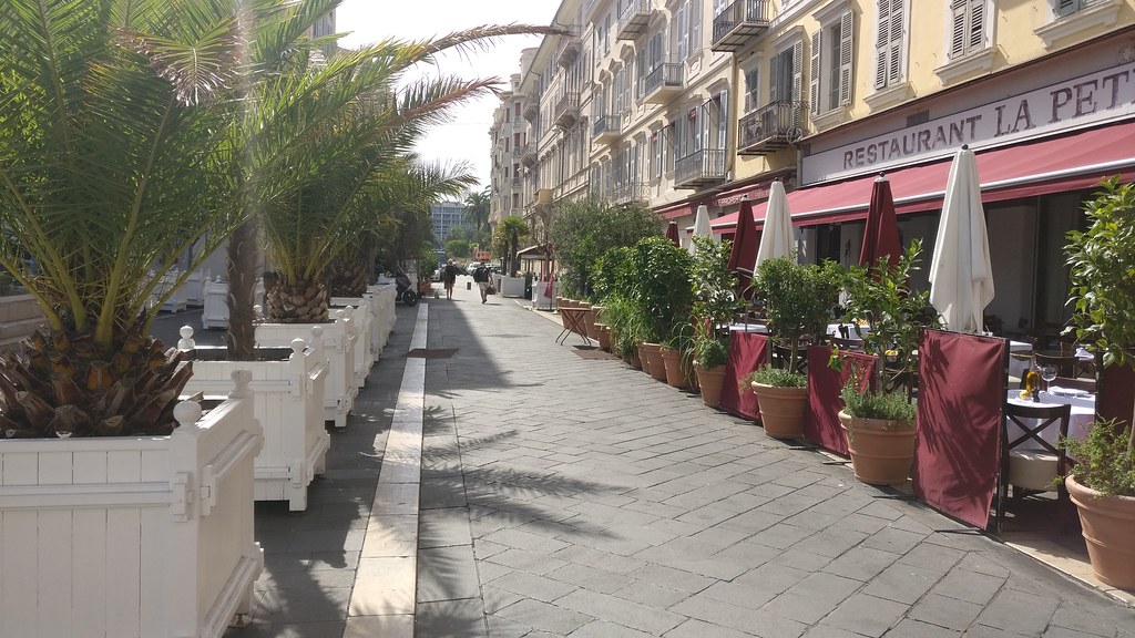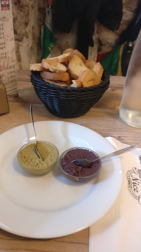 Al ritorno in treno scendo alla stazione precedente di quella di Nizza CIttà in modo da essere piú vicino alla zona del porto e poter visitare la parte est della città. Essendo ora di pranzo butto uno sguardo su TripAdvisor per vedere cosa c'è di buono nelle vicinanze. La scelta ricade su una trattoria che offre piatti tipici di Nizza proprio sulla strada verso il porto. Tipico di Nizza (e ovviamente anche delle zone italiane nelle vicinanze) è la Socca (farinata di ceci o torta di ceci). Non l'avevo mai sentita nominare per cui mi incuriosisco e la ordino dopo un antipasto leggero.