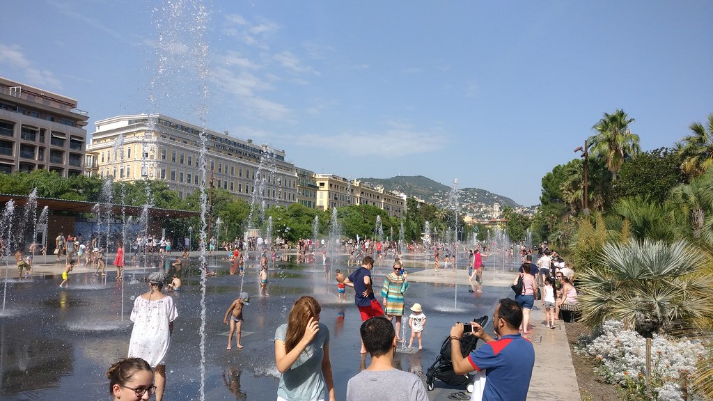 La fontana attraversabile di Piazza Massena, ottima in questi giorni.