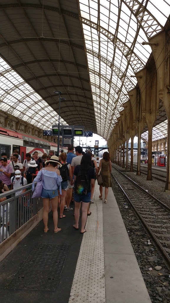 Atterriamo in orario, neanche il tempo di aprire la porta anteriore dell'aereo e già si sente il gran caldo che sta avvolgendo la Francia in questi giorni. Ci si mette poco ad uscire dall'aeroporto e non so come o perché mi viene in mente la brillante idea di raggiungere il centro a piedi anziché utilizzare i mezzi. Rimpiango la scelta ancora adesso. Mi fermo alla prima fermata del bus che incontro, prendendo il primo bus, senza sapere dove andasse, nella speranza che abbia l'aria condizionata a bordo. C'era.