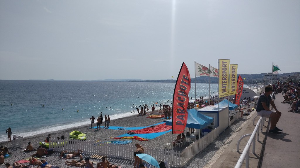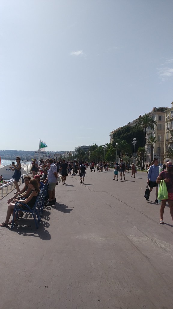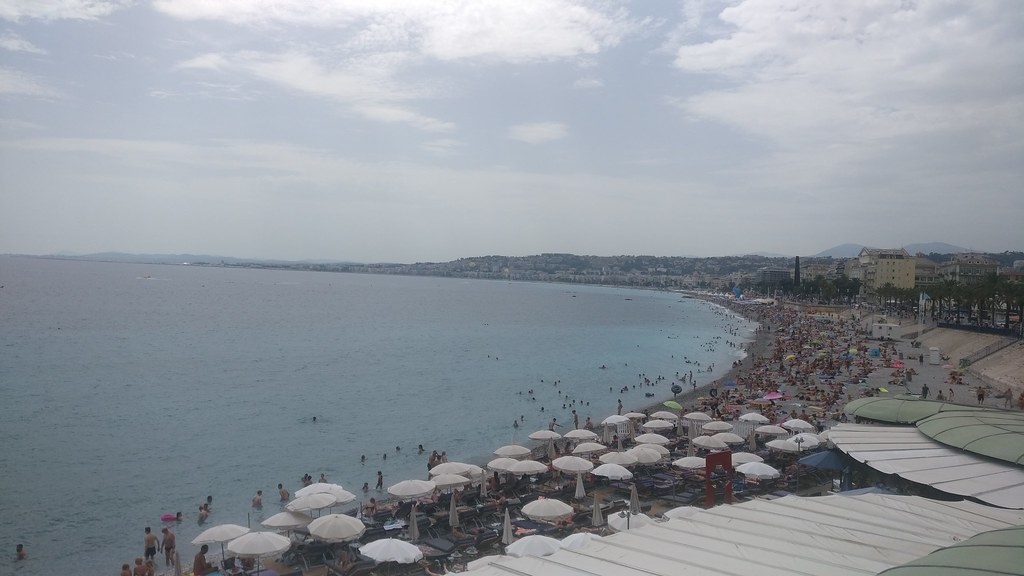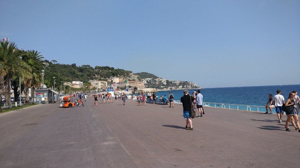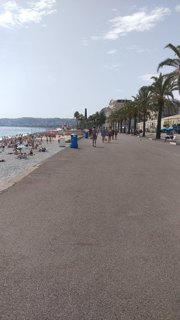Appena vedo la spiaggia in lontananza prenoto la fermata e scendo. Mi trovavo sulla Promenade des Anglais, probabilmente la strada più famosa della città, diventata tristemente nota anche grazie all'attentato dello scorso anno. Mi fermo per scattare qualche foto ma la temperatura è troppo alta.