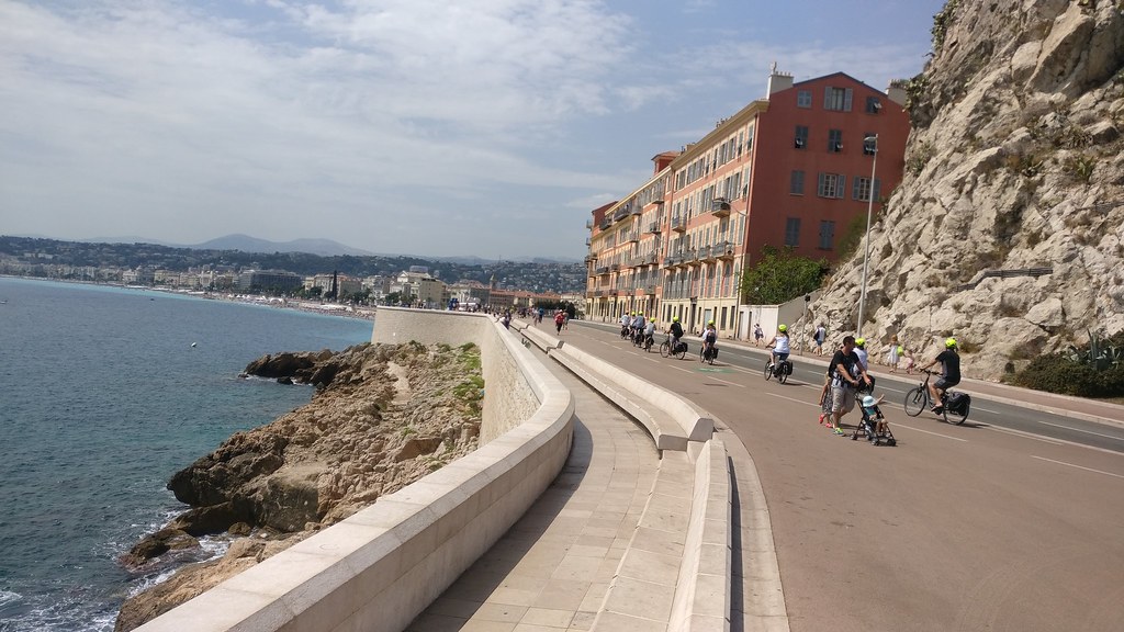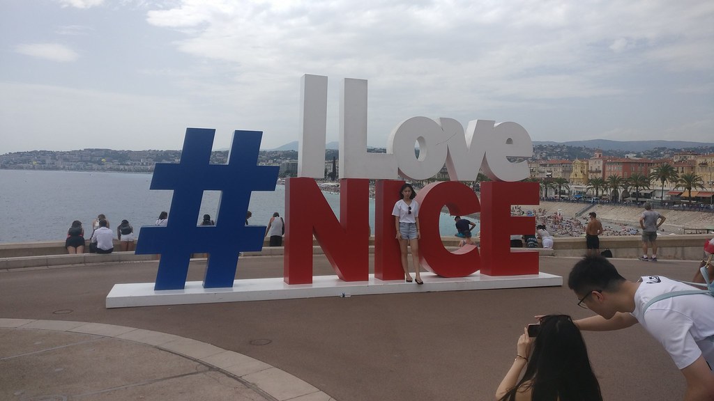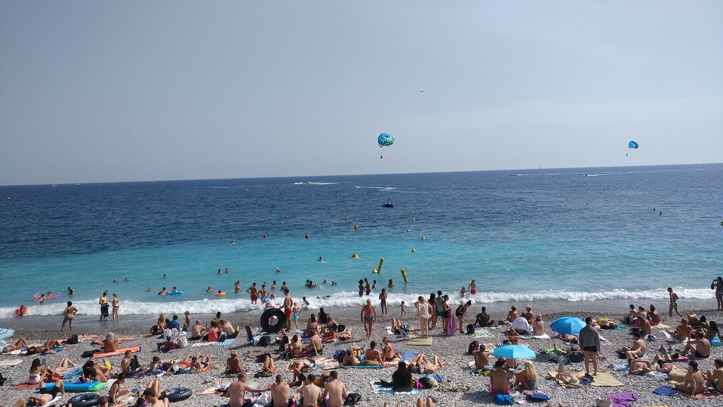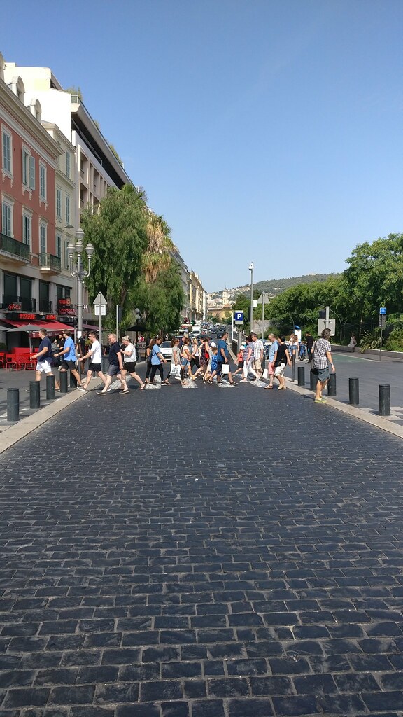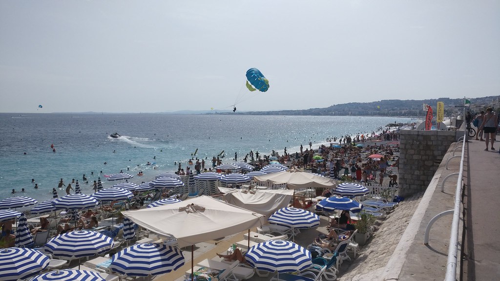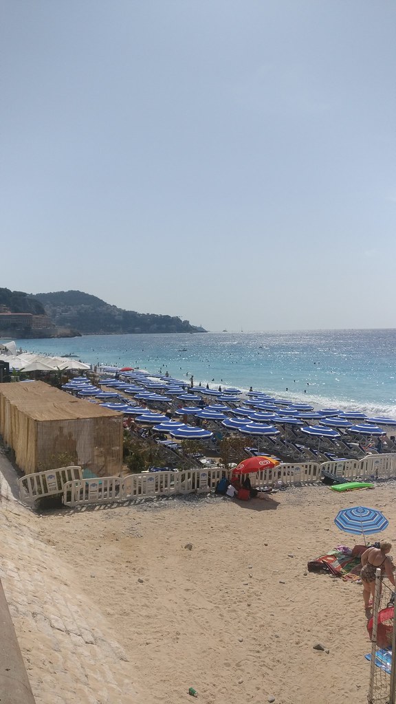 Appena vedo la spiaggia in lontananza prenoto la fermata e scendo. Mi trovavo sulla Promenade des Anglais, probabilmente la strada più famosa della città, diventata tristemente nota anche grazie all'attentato dello scorso anno. Mi fermo per scattare qualche foto ma la temperatura è troppo alta.