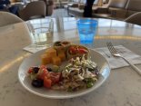 Parcheggio Negroni e bagaglio ad una tavolo e cerco qualcosa al buffet. Torno col seguente cibo ma il Negroni mi è stato già portato via in quanto lasciato unattended... una coppia anziana seduta al tavolo di lato mi fa "They are very efficient here"... manco gli Svizzeri.