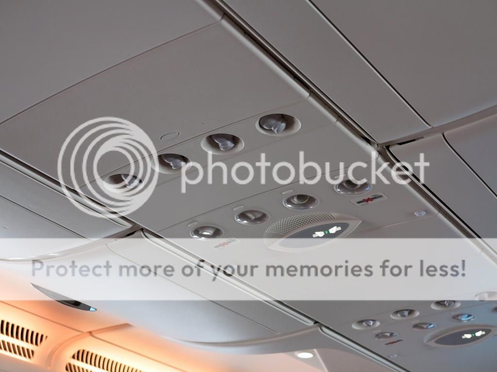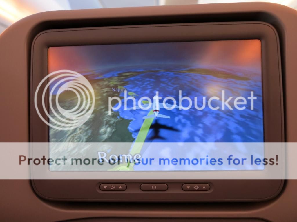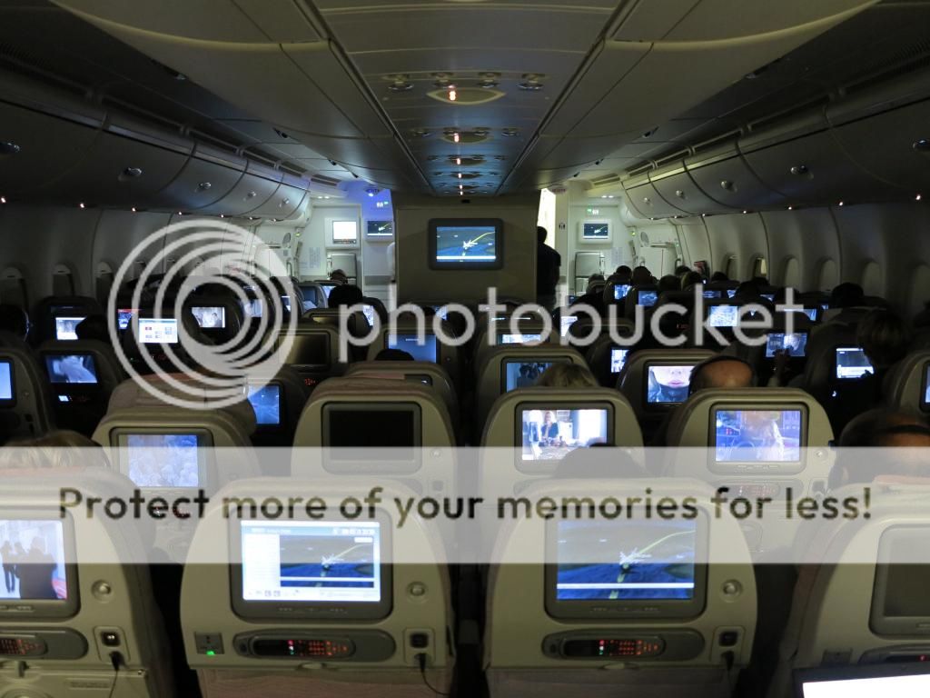 Rispetto cioè a EK (e anche AF, per rimanere in tema di 380), si ha un minore spazio per le gambe, mentre ogni sedile è incassato in un guscio di plastica scura. La sensazione estetica è a mio avviso orribile, mentre quella funzionale non è da meno: la presa di corrente sta tipo sotto il sedile, quella USB nella parte frontale del bracciolo; il telecomando dentro il bracciolo; non c'è l'appendino; non ci sono i piccoli vani porta oggetti e/o portabicchieri; la tasca davanti è molto poco spaziosa; se si aggiungono i colori scuri davanti e dietro, è un miracolo se si riesce a non perdere qualcosa, visto che o ti ricordi di aver poggiato qualcosa da qualche parte o è la fine. L'IFE riesce forse ad essere addirittura peggiore: lento, poco intuitivo e con pochissimi contenuti. Confrontarlo con quello che monta AZ sui 330 è come confrontare un Sony 4D a 50" contro un vecchio Mivar a tubo catodico.