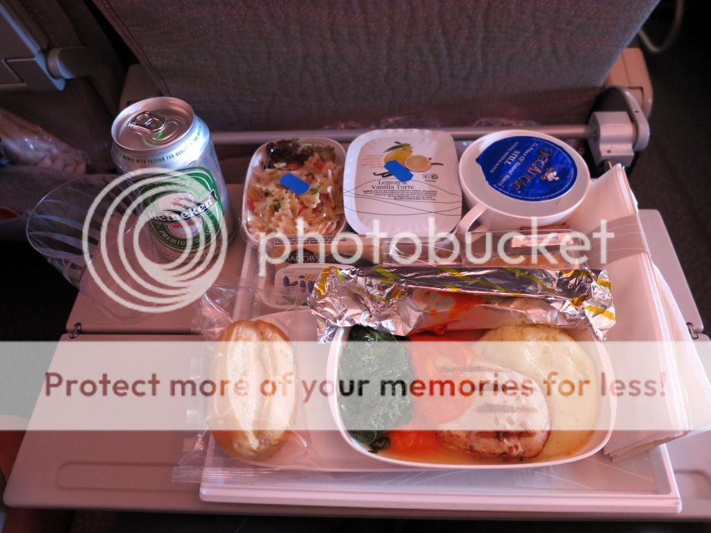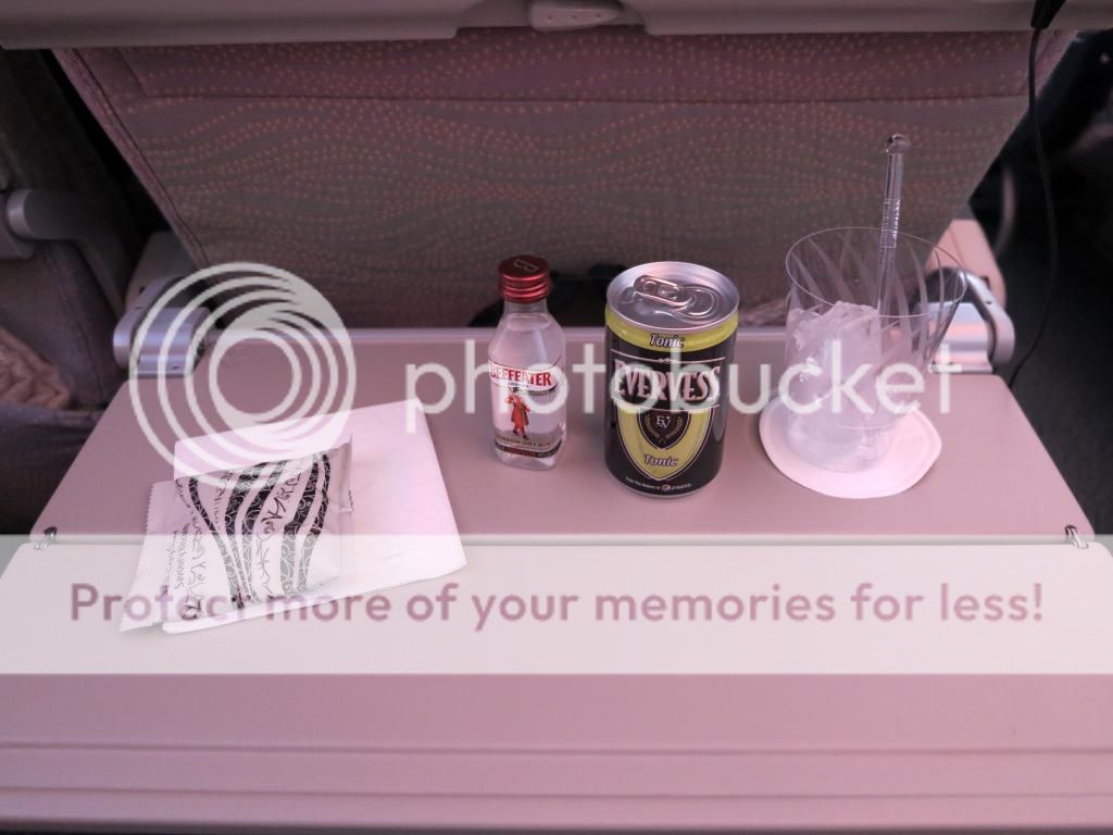 Spazzolo via tutto senza remore, sia perchè nel frattempo posso considerarmi ubriaco e sia anche perchè parliamo di una tra le migliori sbobbe mai provate in Y. Finora vince AZ, ma EK ha il plus del gintonic senza freni. L'assistente di volo che serve il mio settore ha anzi notato il mio stato di estasi, e mi ha offerto birra o gintonic al posto dell'acqua ad ogni passaggio.