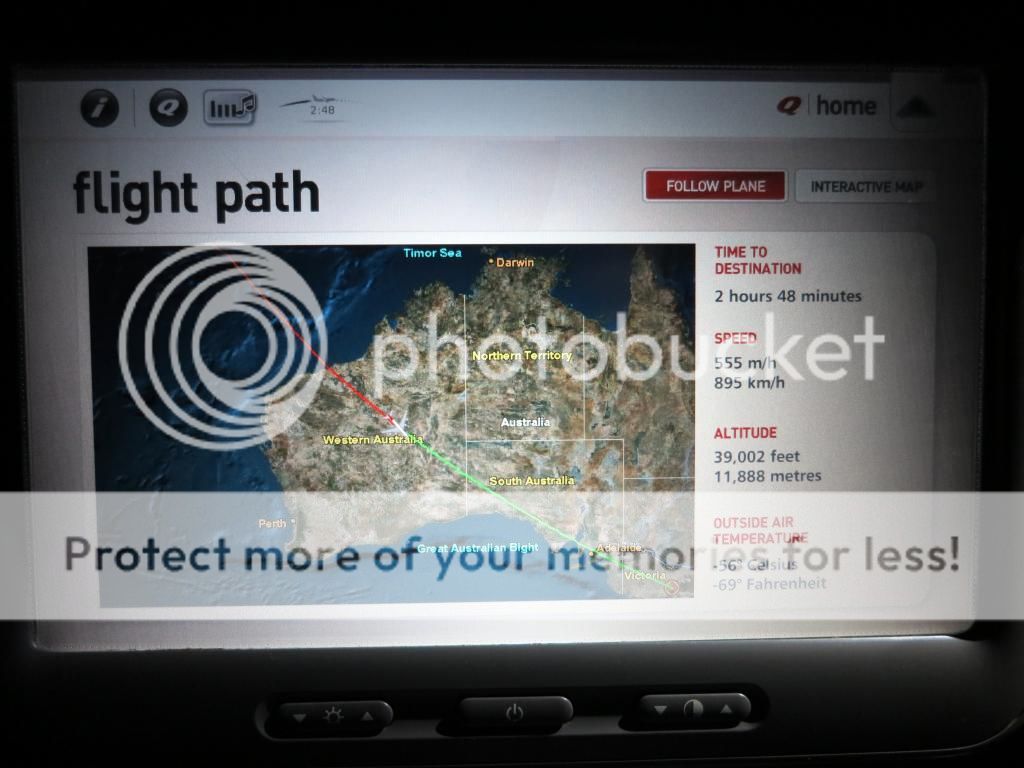 Di questo volo ho molte meno memorie di quello dell'andata. Sia per la delusione QF, sia perchè l'allestimento è così scuro che non si ci vede una ceppa, e sia perchè è l'una e mezza di notte e giustamente comincia a fare sonno.