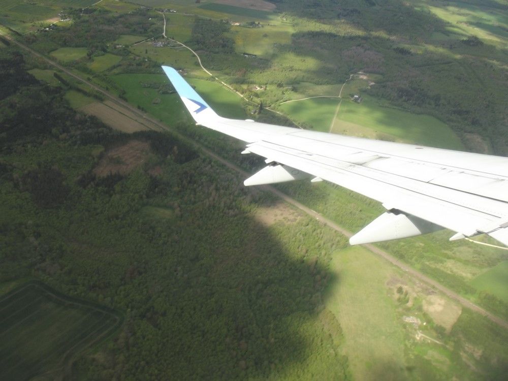 inizia la fase di discesa e per i rimanenti 20 minuti causa vento forte proveniente dal Baltico verremo sballottati a destra e sinistra senza frontiere. bravo cmq il pilota a tenere fermo l'embraerino.