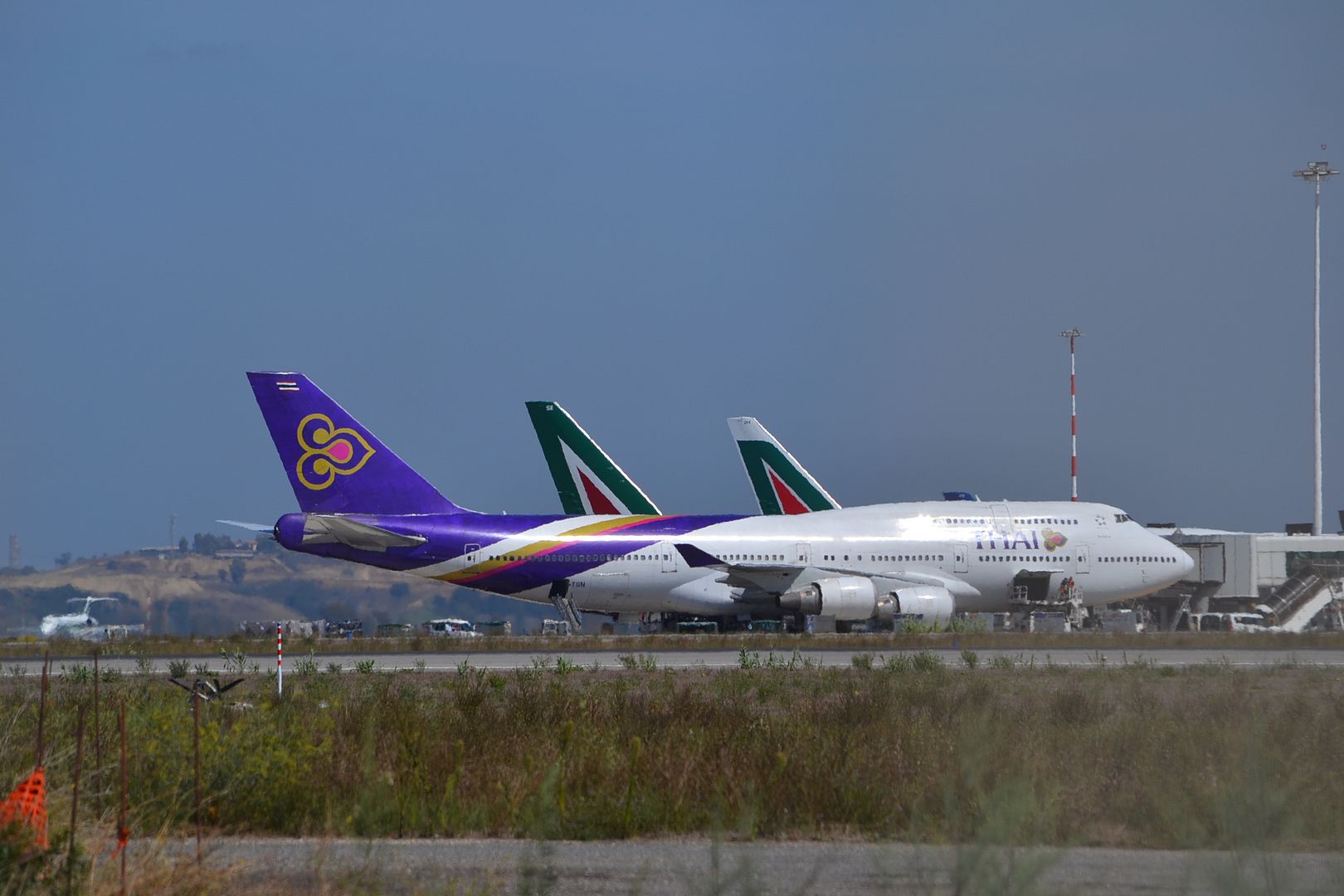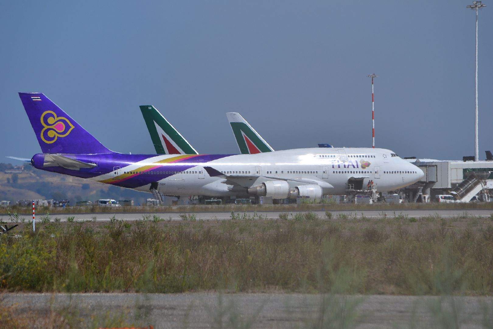 Thai Airways B747-400 in attesa di decollare dalla 16R/34