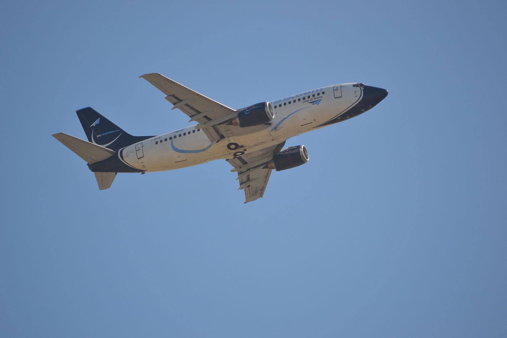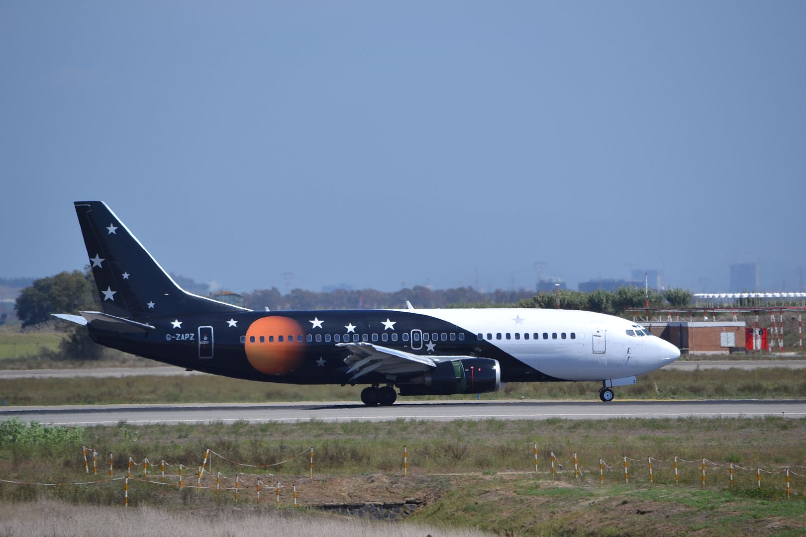 un Titan Airways B737-300 beccato al volo dalla terrazza (ora chiusa) del benzinaio in via Coccia di Morto