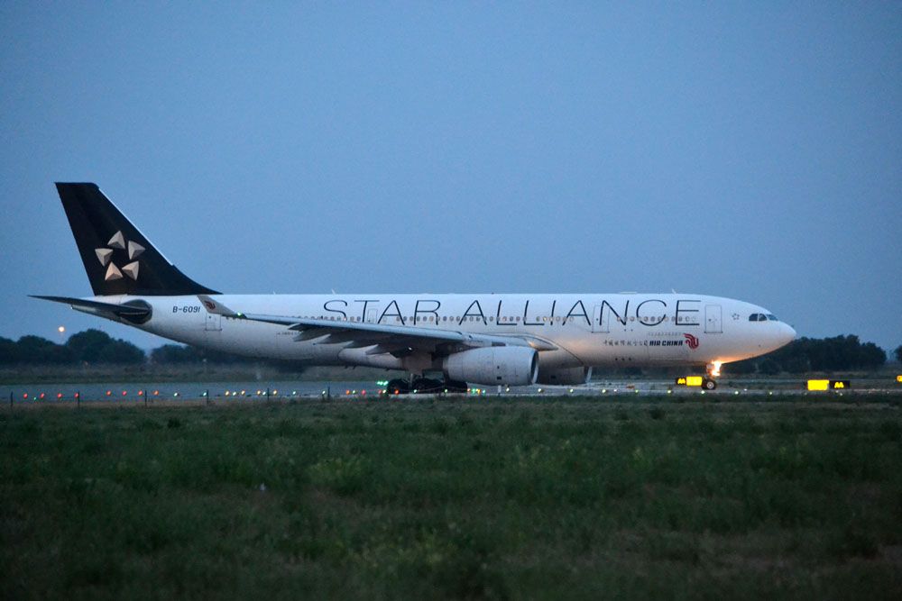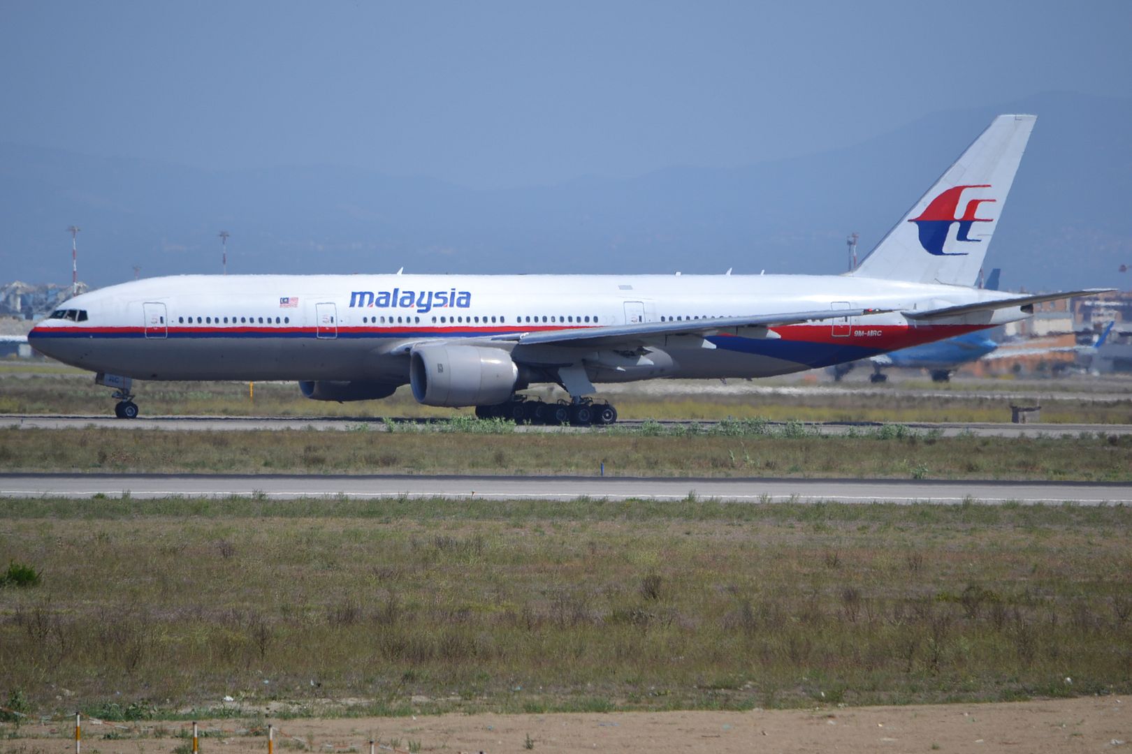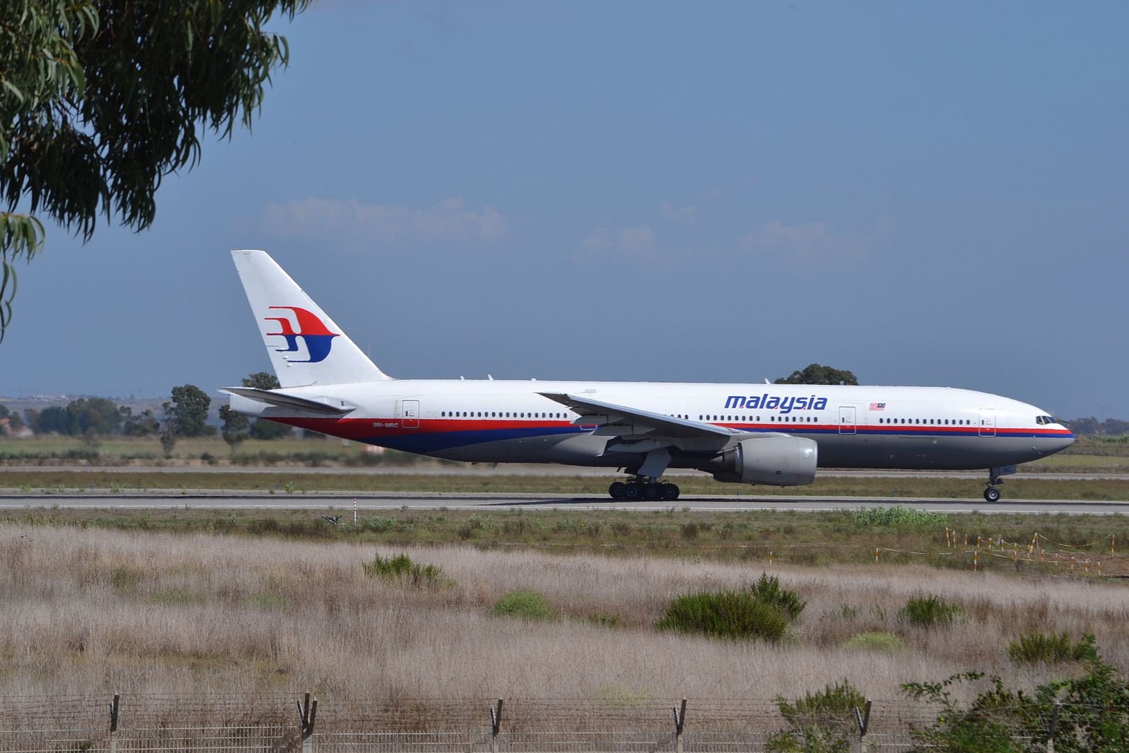 il Malaysia B777-200 in fase di rullaggio sulla 16R/34L