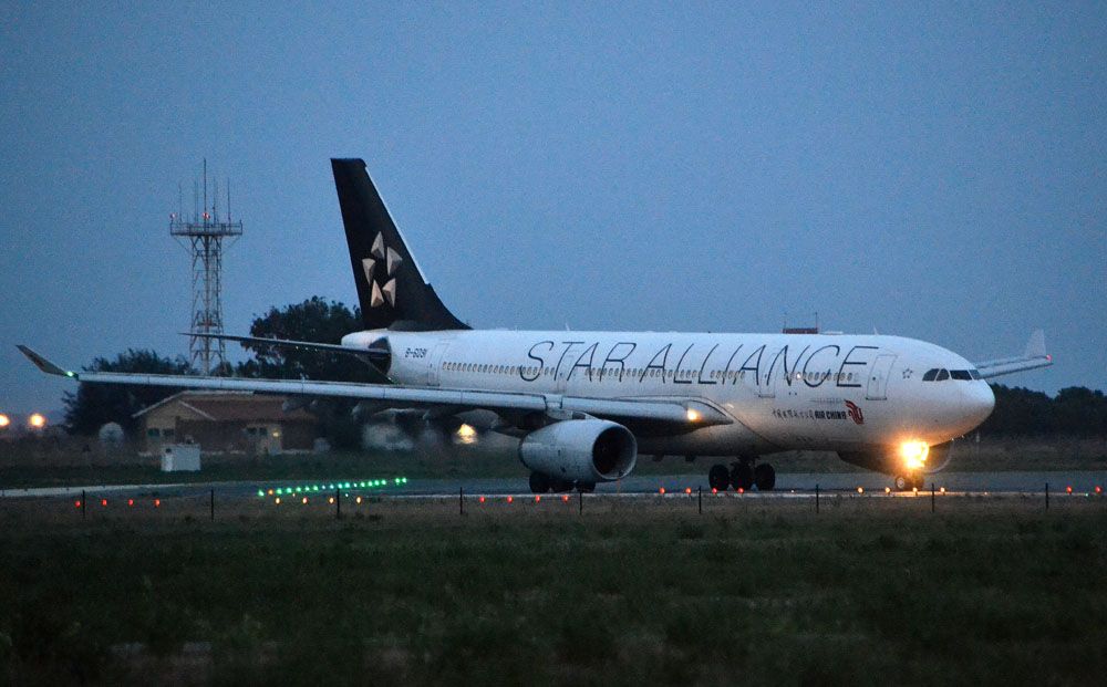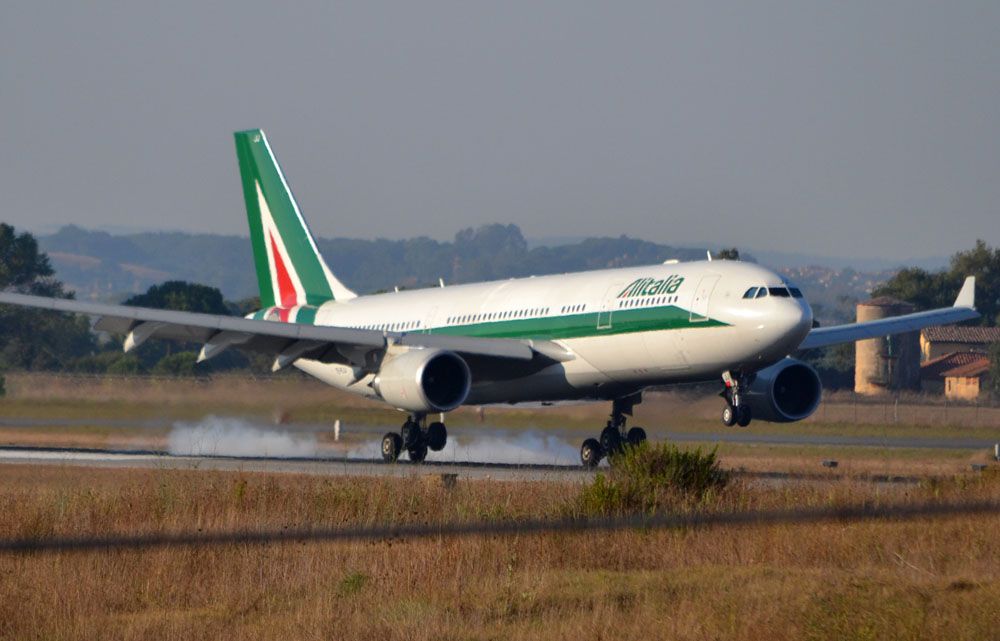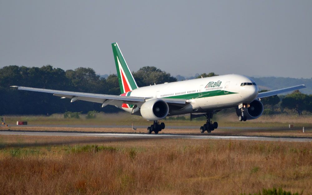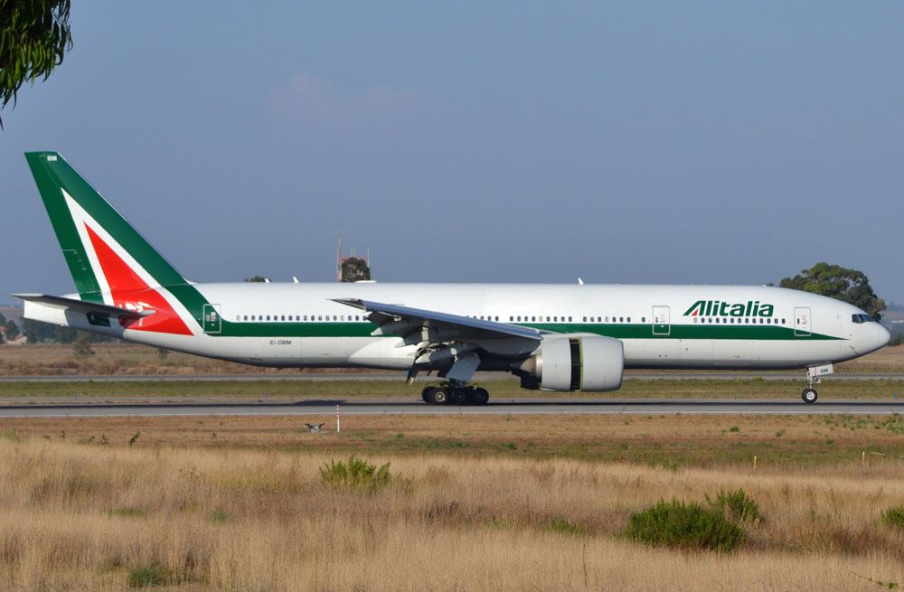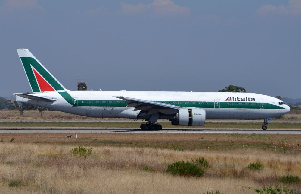 Alitalia B777-200 appenna atterrato sulla 16R (vecchia livrea)