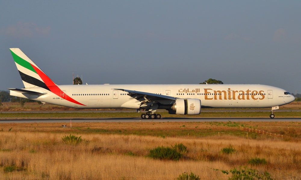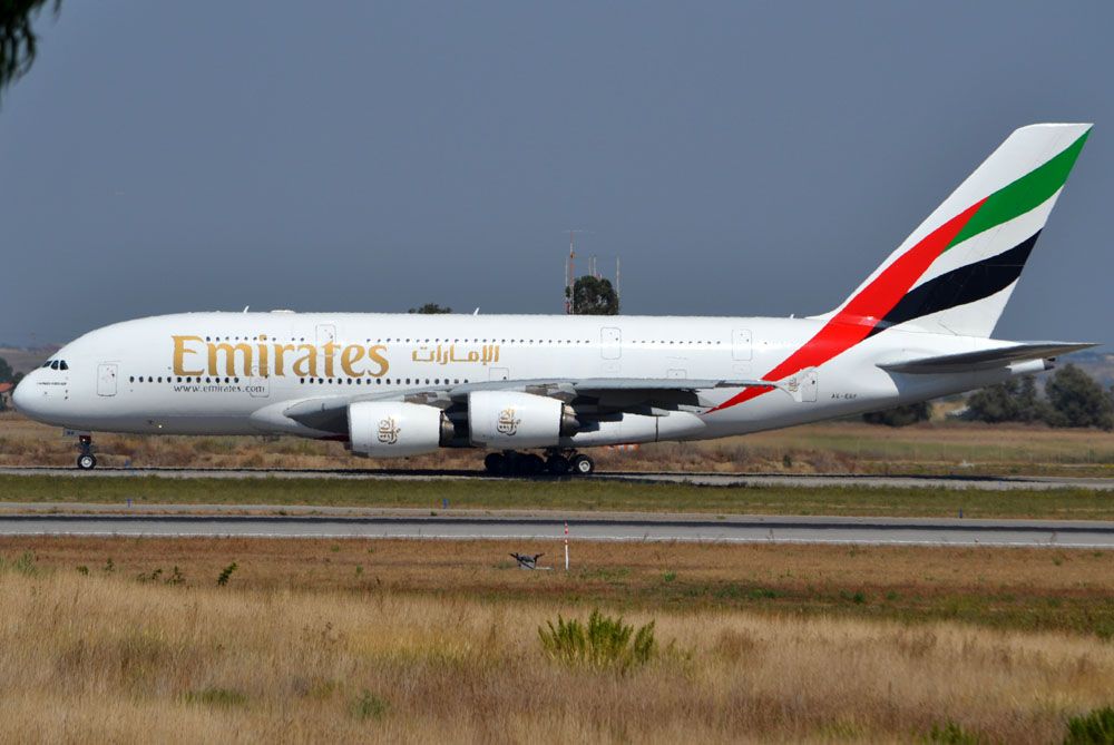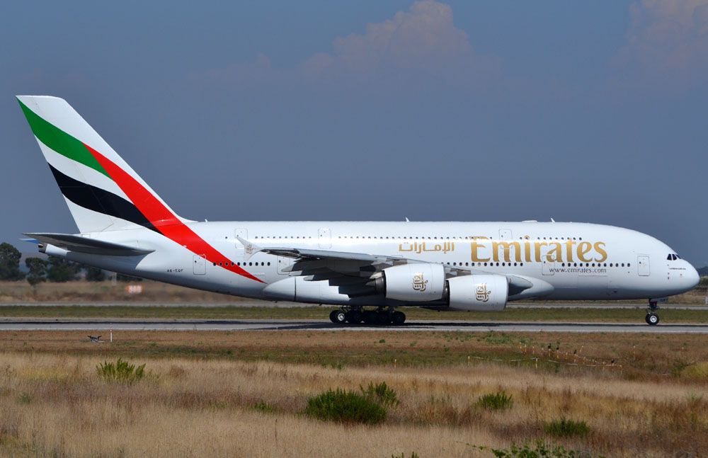 Emirates A380 in rullaggio (la taxiway parallela alla pista 16R/34L)
