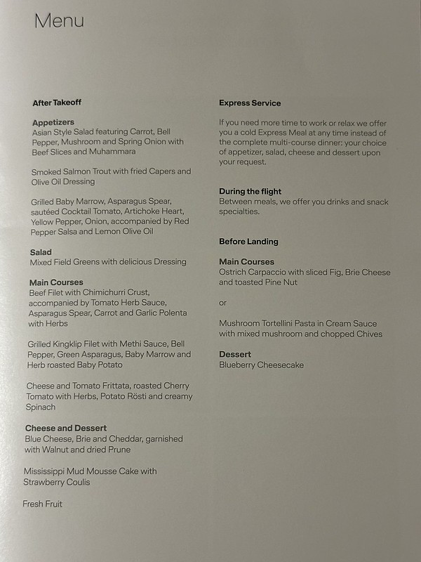 Catering su Swiss di ottimo livello; buono su Lufthansa ma il secondo servizio sul JNB-MUC è veramente osceno.
