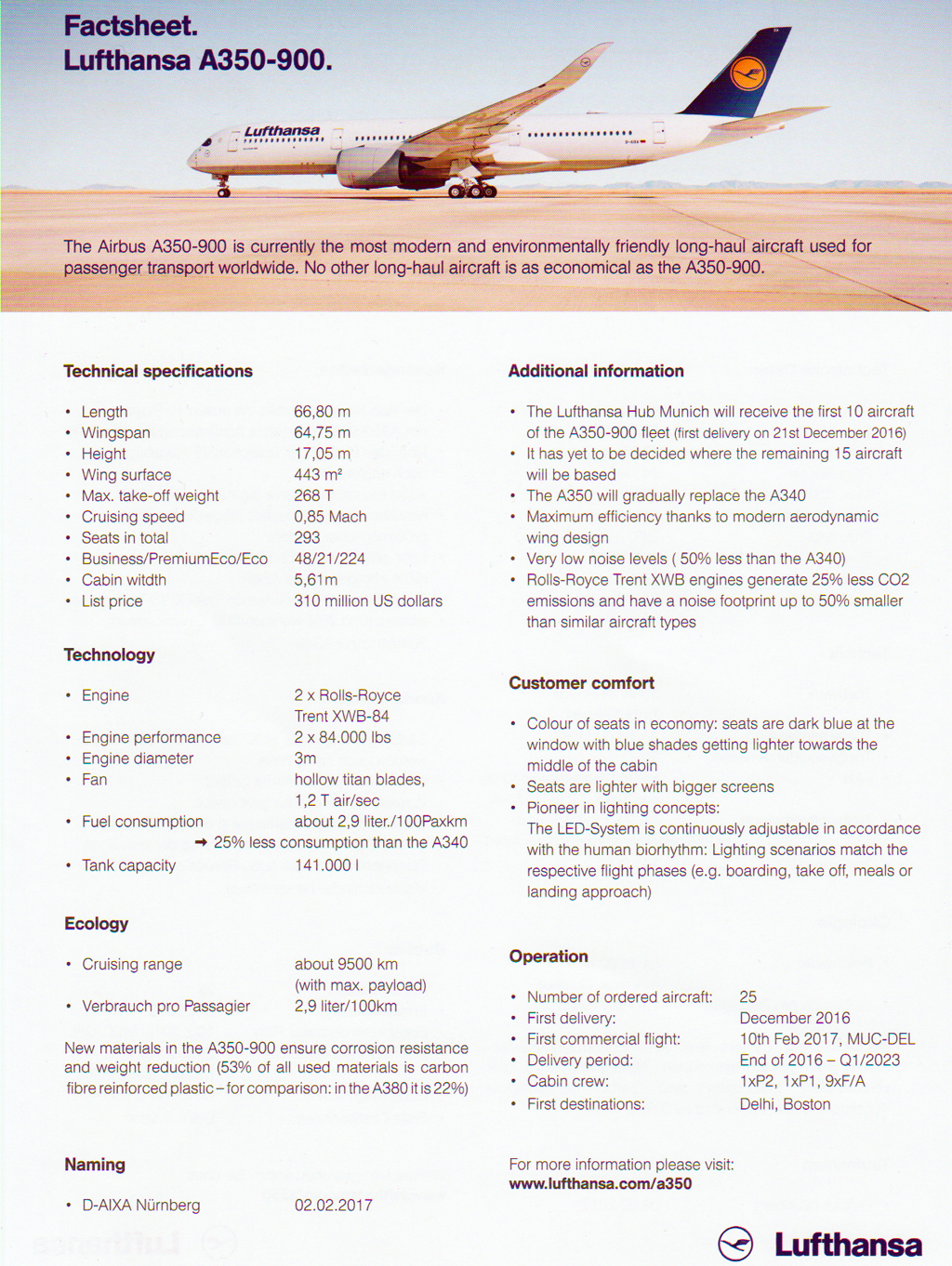 Lo scorso giovedì 2 febbraio, presso un Lufthansa Technik Hangar allestito a festa a MUC, Lufthansa ha ufficialmente presentato il suo ultimo acquisto made in Tolosa, ovvero l'Airbus A350-900XWB.