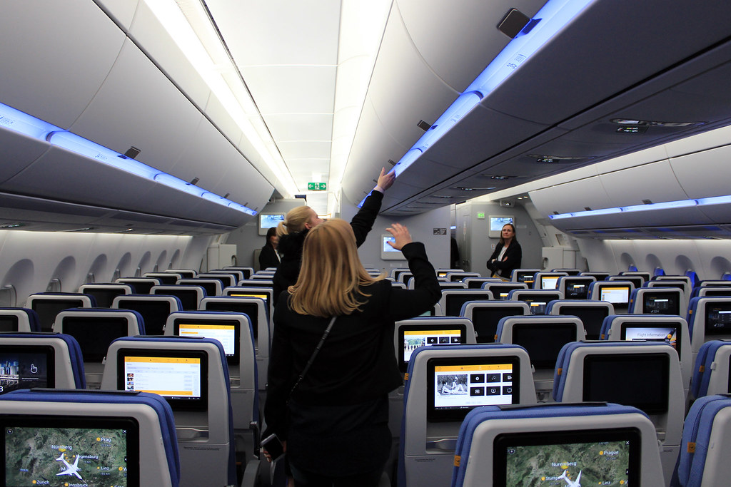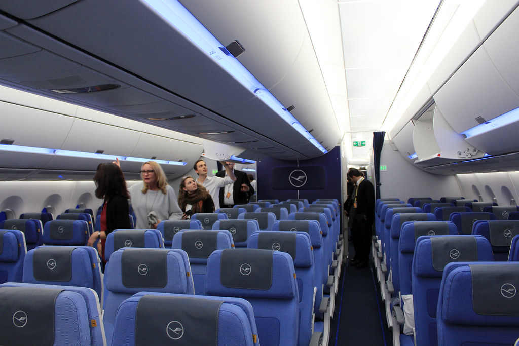 - l'allestimento scelto da Lufthansa prevede l'uso di un complesso sistema di illuminazione interna, progettato per adattarsi al bioritmo dei passeggeri. In totale, sono presenti 24 diverse combinazioni e scenari luminosi. Lo stesso sistema verrà presto esteso anche ai Boeing 748.