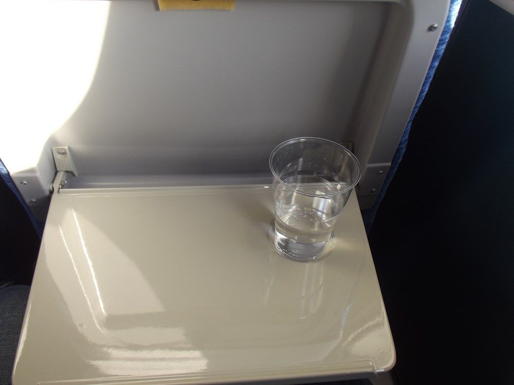 torno al mio posto e nonostante l'aereo non si sia mosso inizia il momento refreshment che consiste in un bicchiere di acqua naturale e delle caramelle alla menta