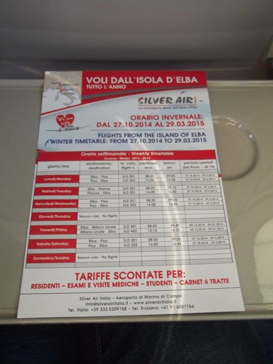 Come ultimo TR per l'anno 2014 decido di provare una regional e nello specifico la Silver Air Italia che dal 27 ottobre riprende i voli in continuità territoriale dall'Elba verso Firenze, Pisa e Linate (solo per il periodo natalizio).