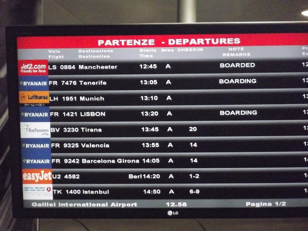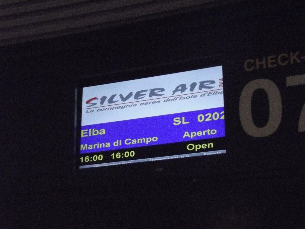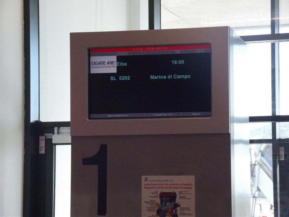 l'imbarco avverrà dal gate 1, ammetto che vedere Marina di campo sul display partenze mi fa venire in mente il mio volo da Malpensa per l'Aquila......