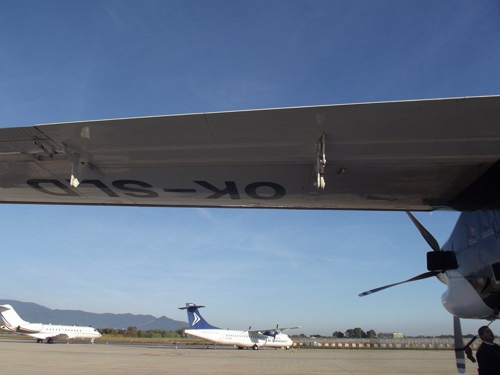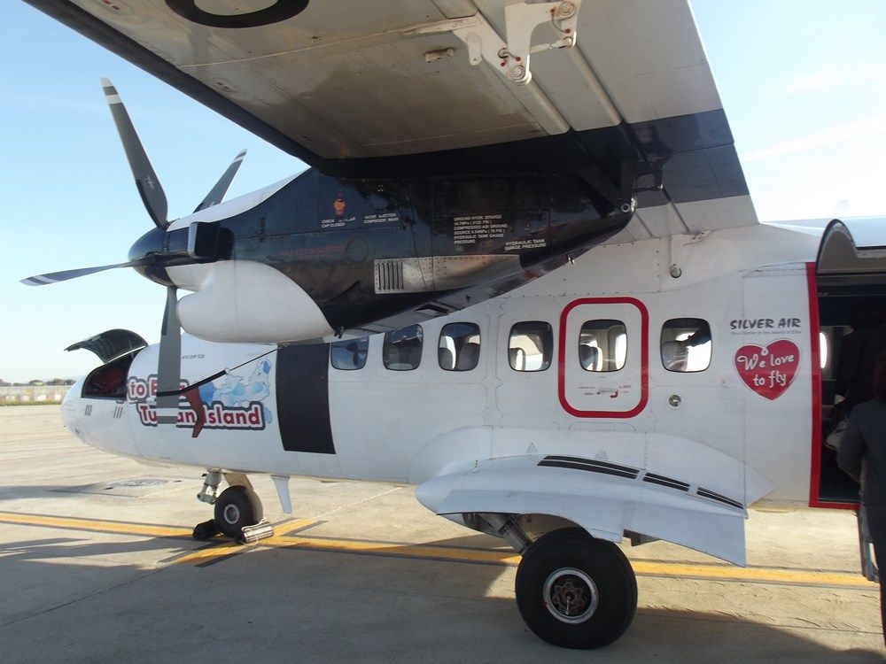 l'aereo è schedulato con partenza alle ore 16, alle 1530 inizia l'imbarco tramite autobus interpista e dopo un bel giretto tra jet privati e jet di linea finalmente arriviamo davanti a sua maestà, il cecoslovacco LET410 --- "chapeau"