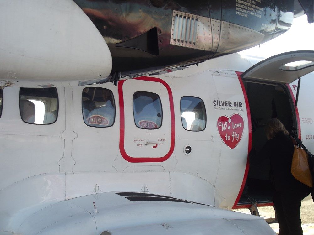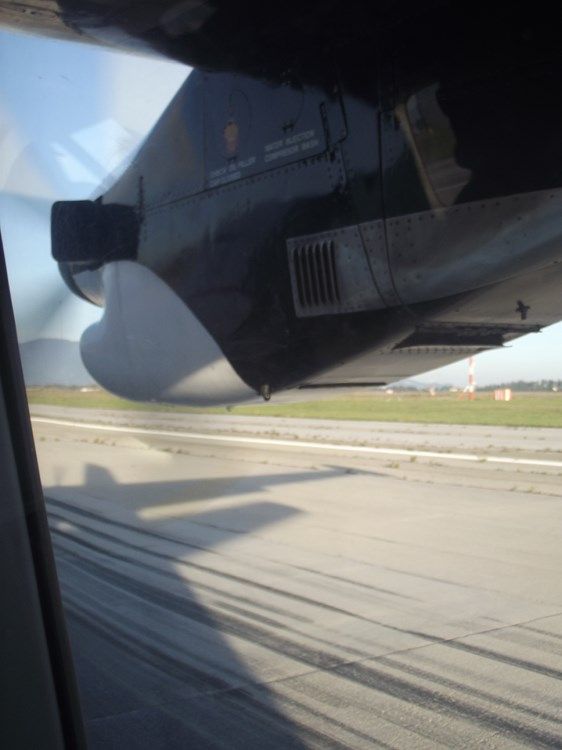 finalmente la hostess chiude il portellone e l'aereo inizia a muoversi, non è pressurizzato e fa un po' calduccio e anche la hostess simpaticissima sembra patire la temperatura....