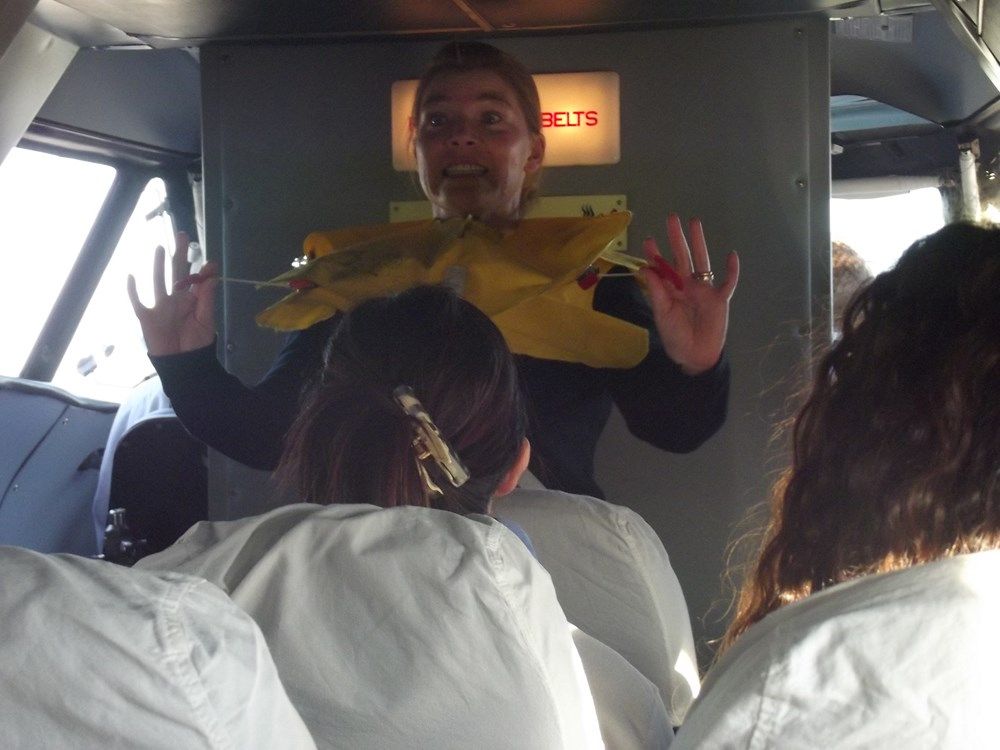 non so se mi fa più ridere la statua a 90 o la faccia dell'hostess durante il briefing sulle emergenze. ben fatto!
