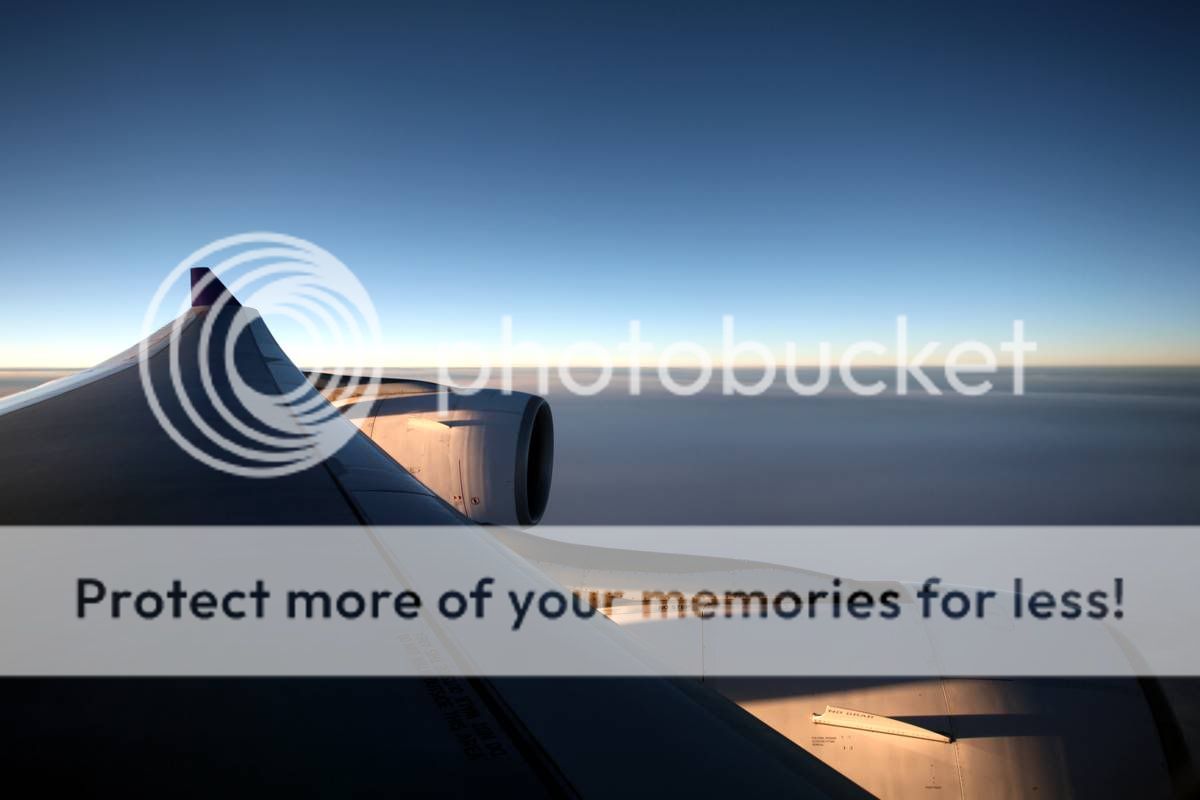 L'aereo parte rigorosamente in ritardo, come ci annuncia il comandante in un'inglese da far rabbrividire (ma cavolo, due frasi fatte sono, e imapratele a memoria!) così ne approfittano le AA/VV per servire il primo giro di welcome drink, spumantino fresco che ci sta benissimo :D